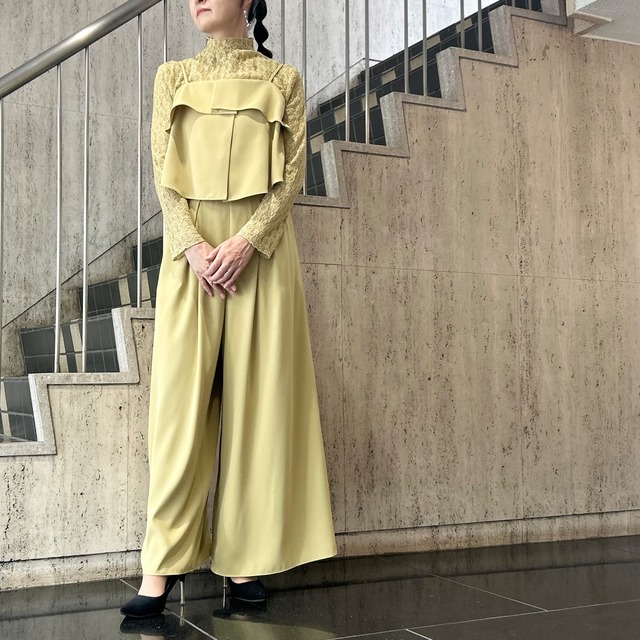 ロングローブレイヤードオールインワンパンツドレス