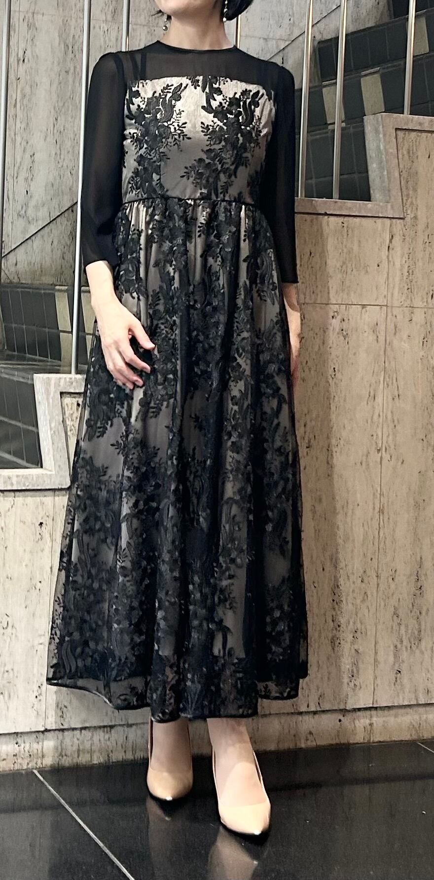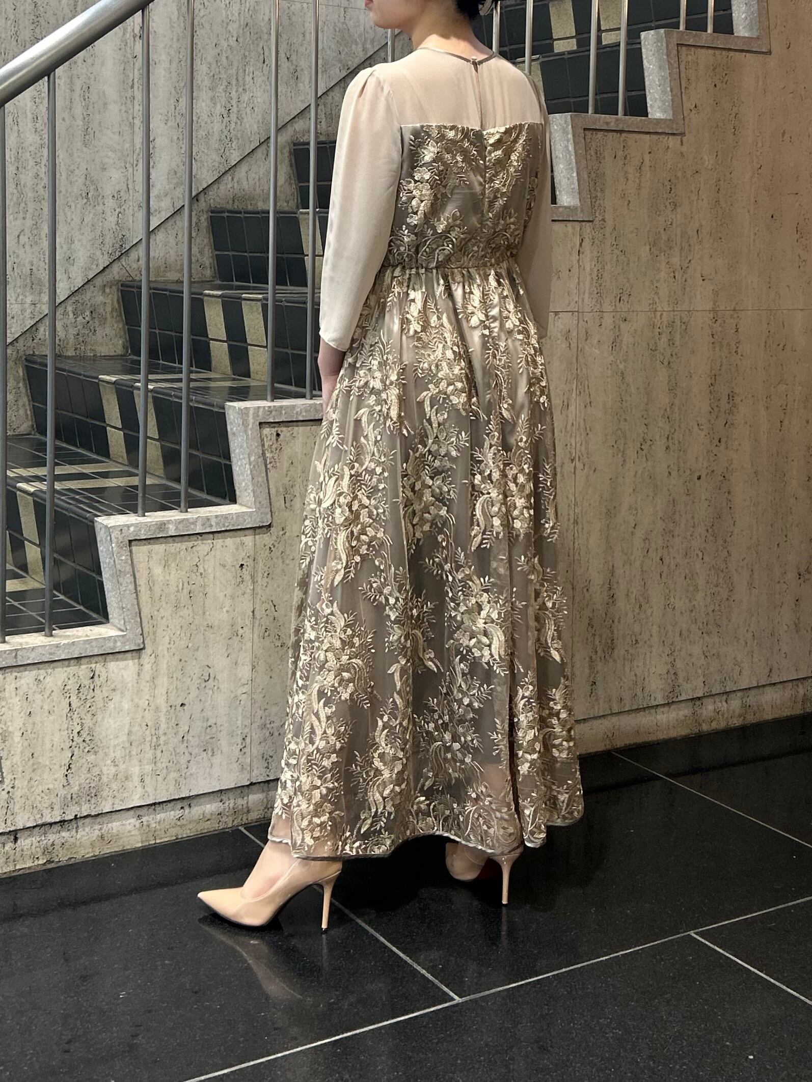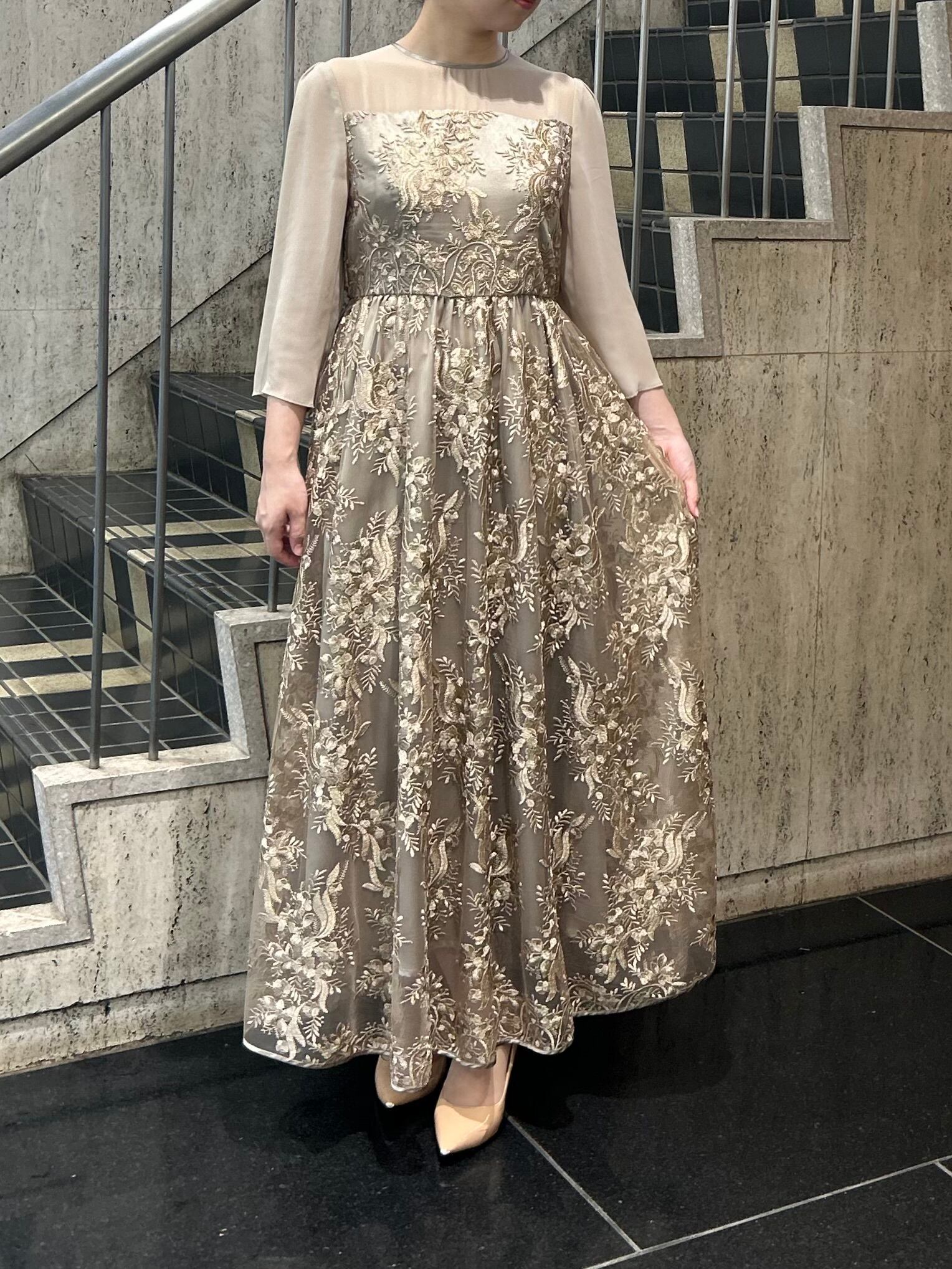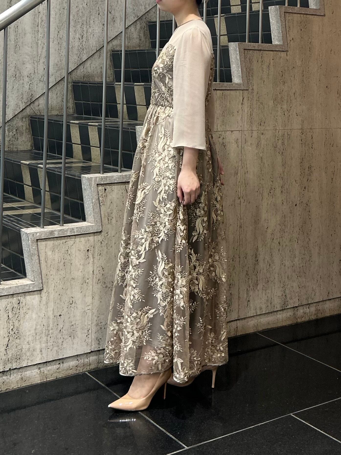 刺繍チュールロングドレス