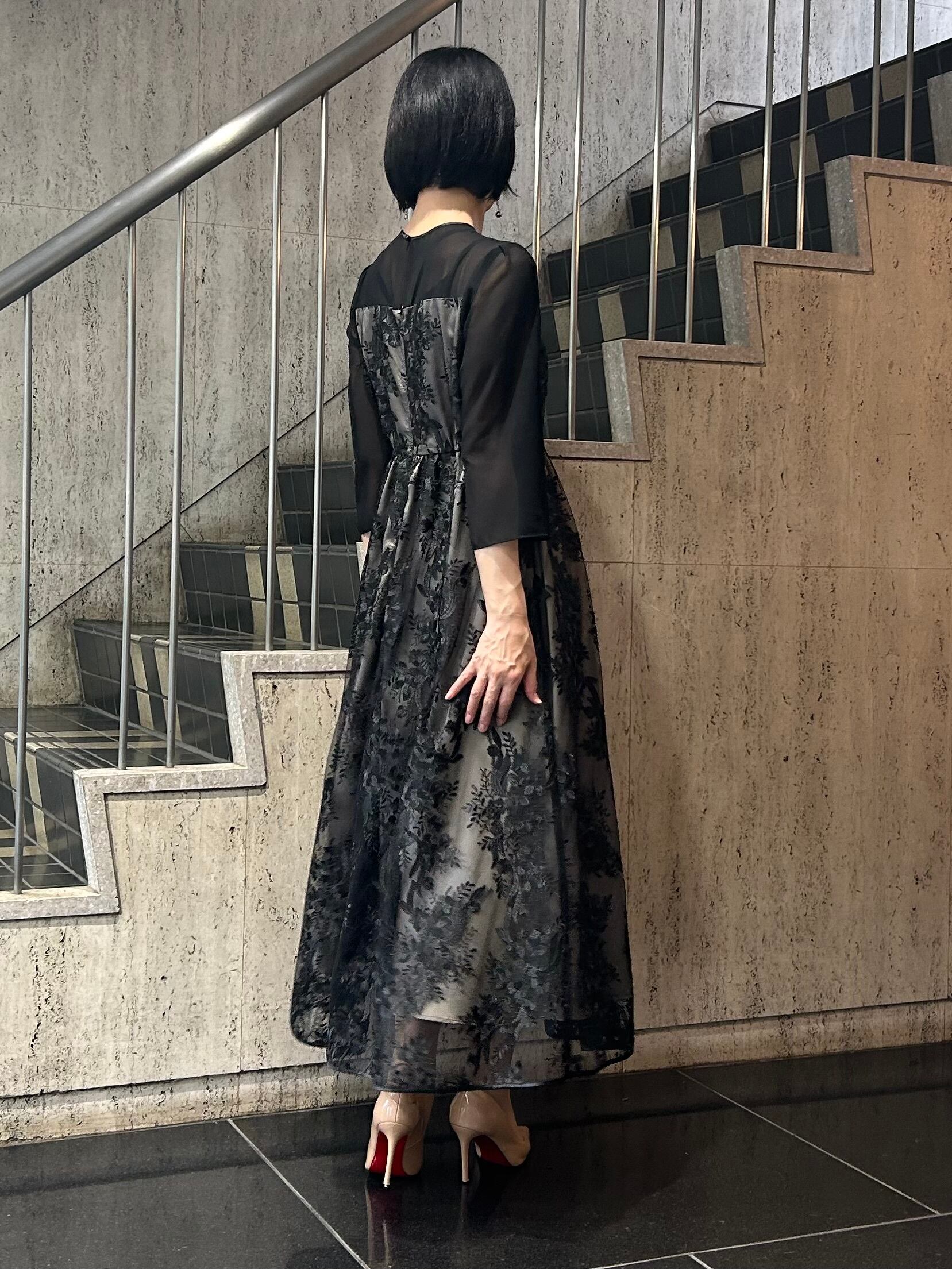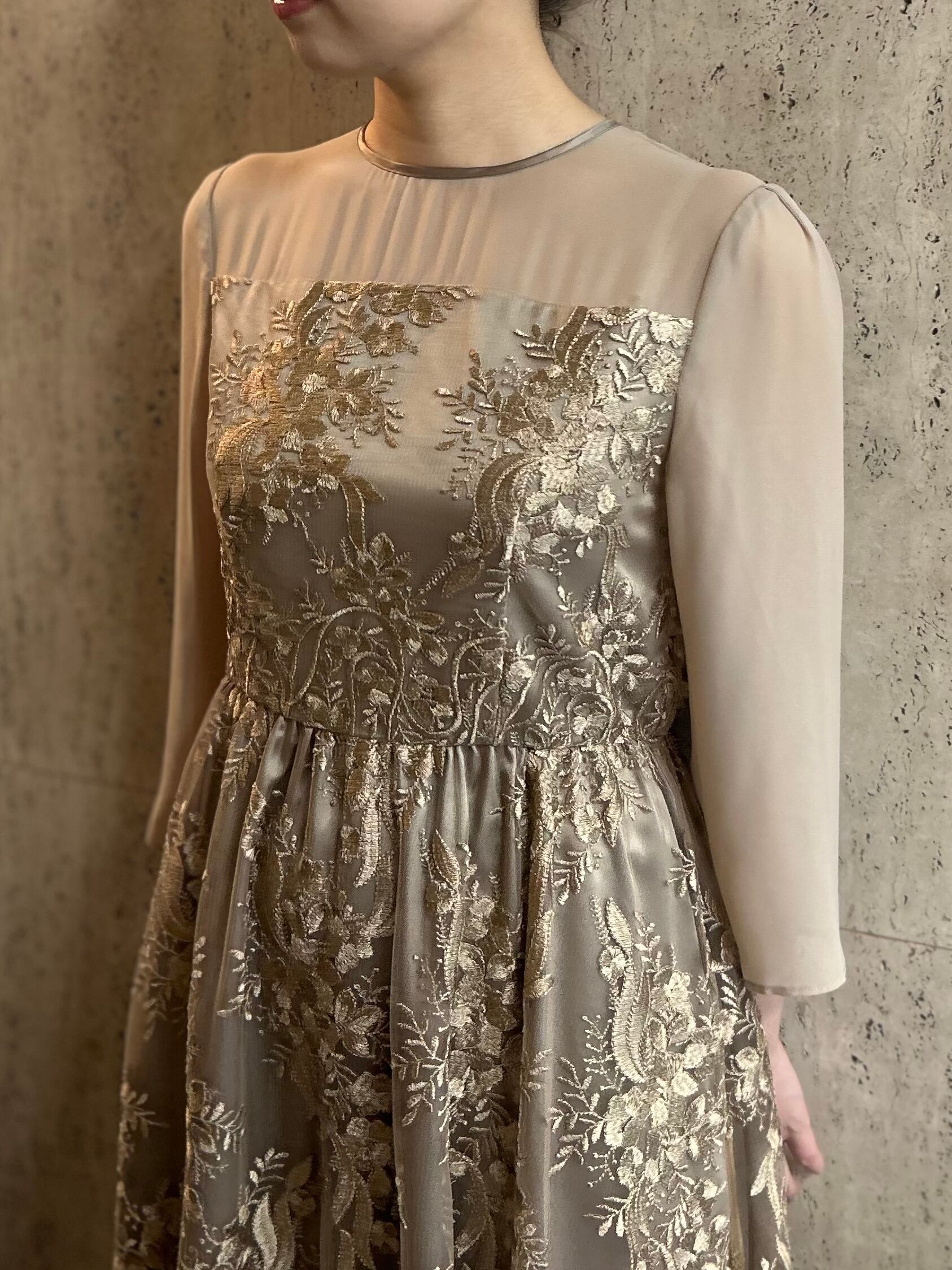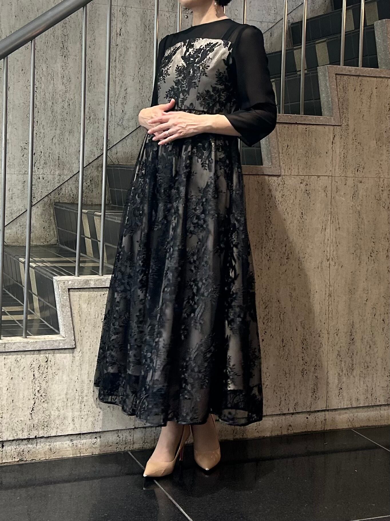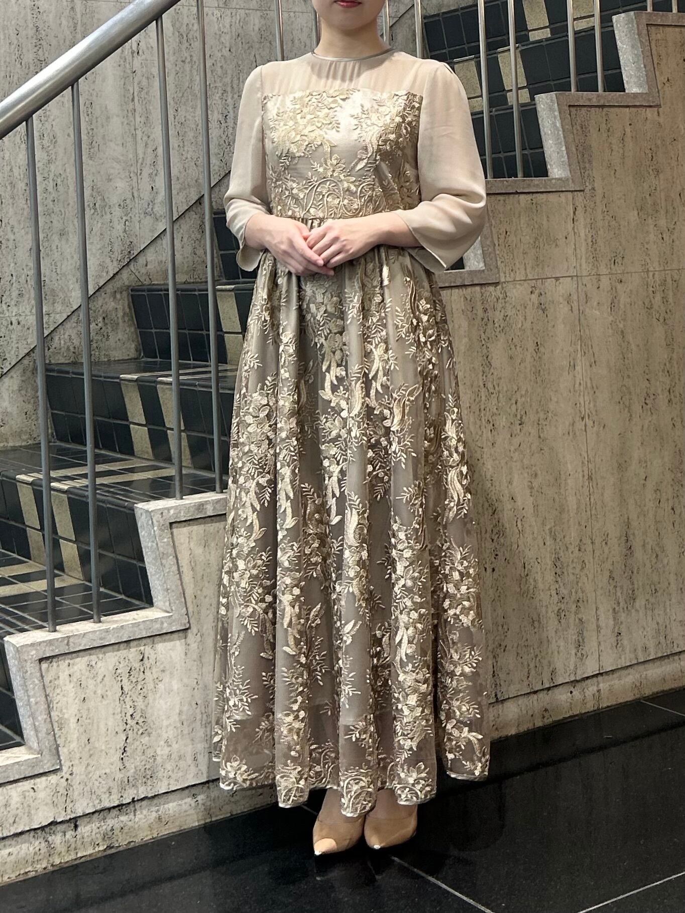 刺繍チュールロングドレス