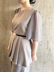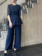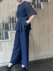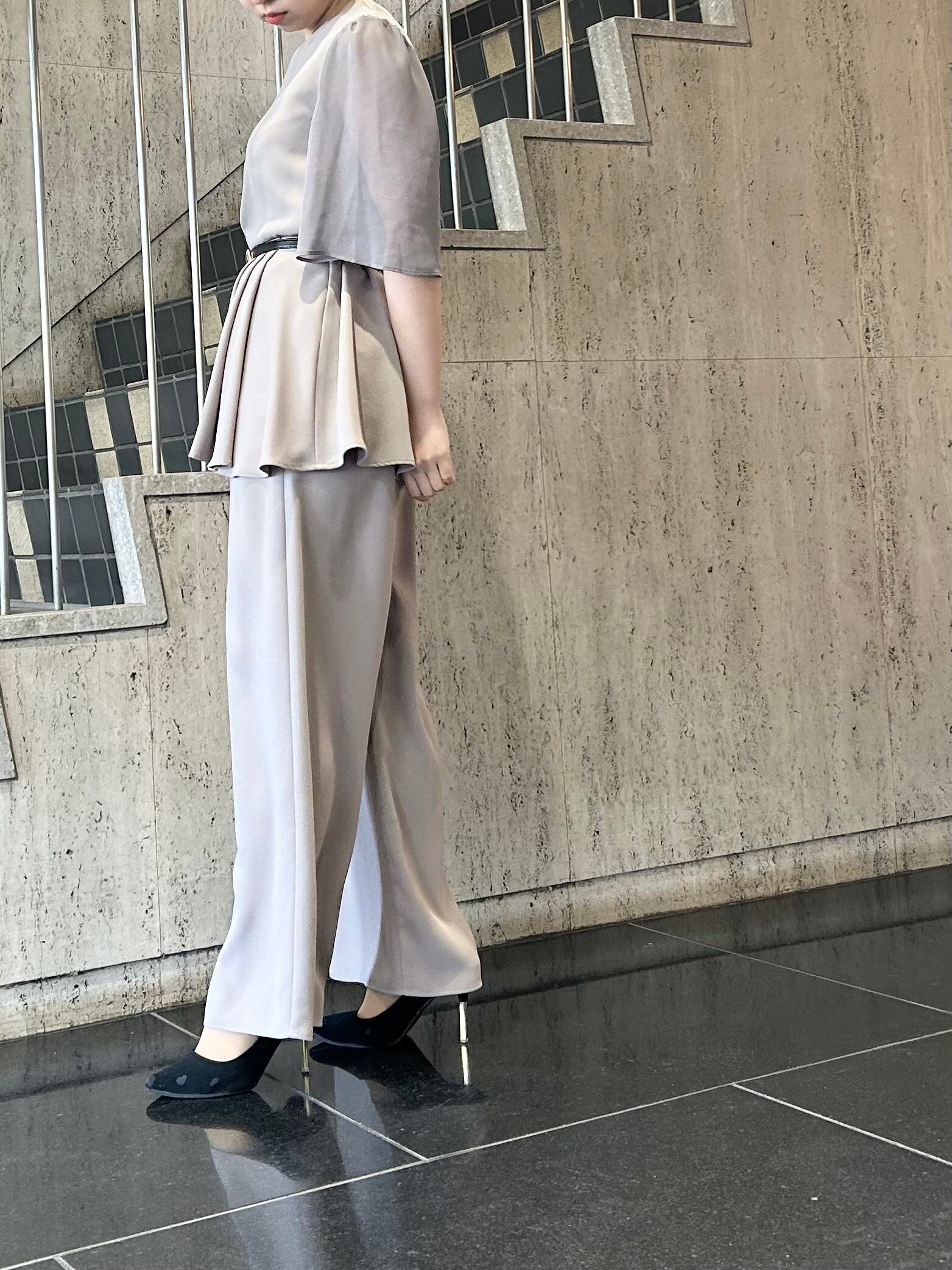サイドタックドレープペプラムトップス&ワイドパンツsetup