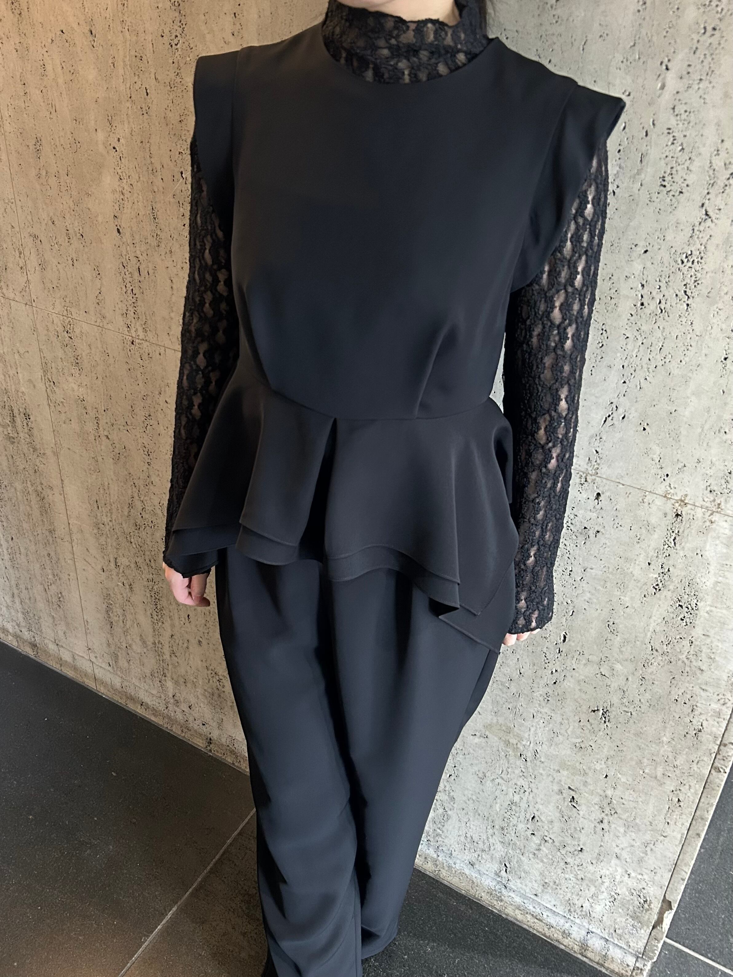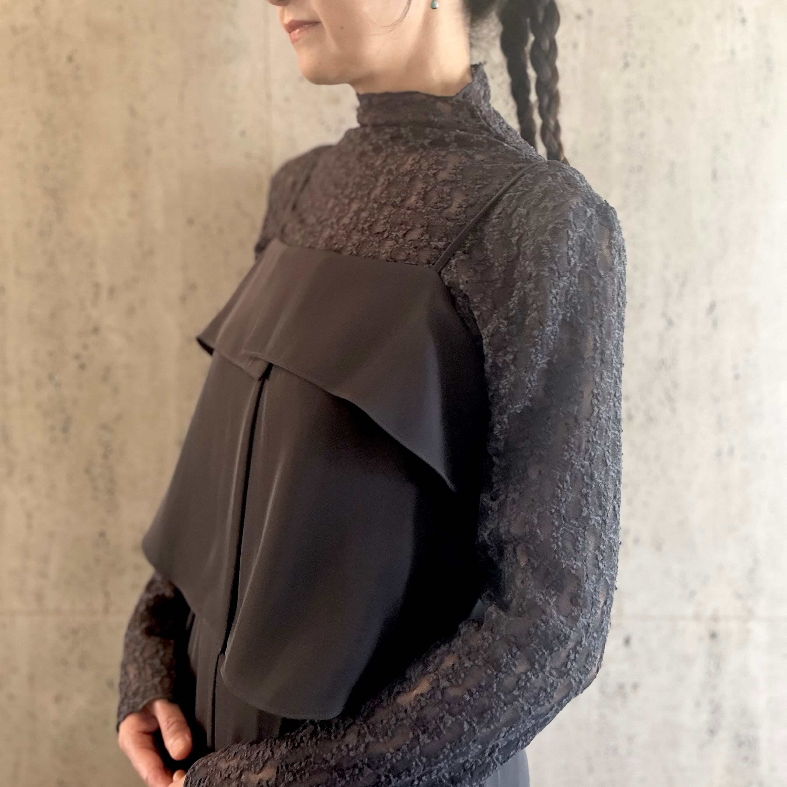 ストレッチレースを使用したハイネックインナーです。