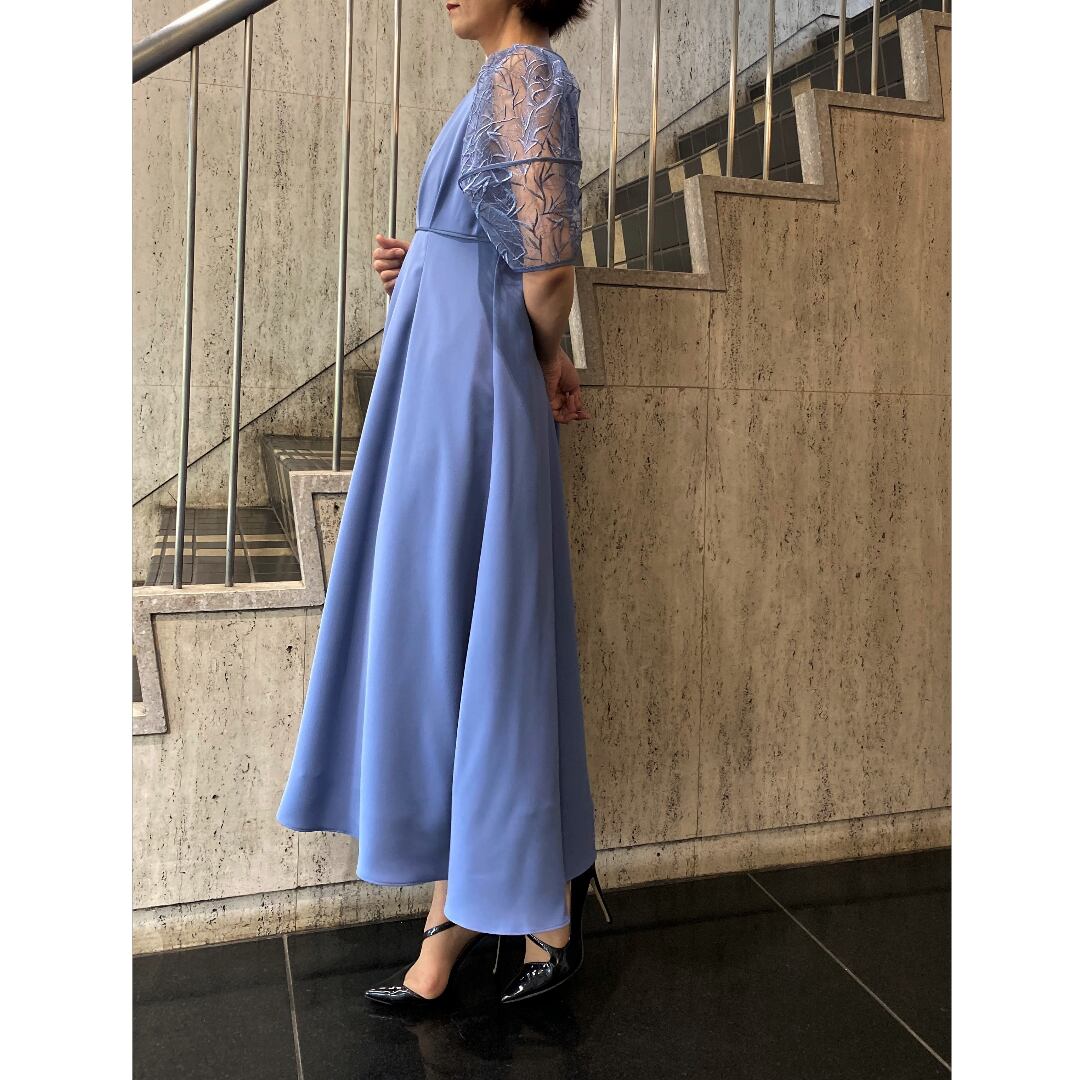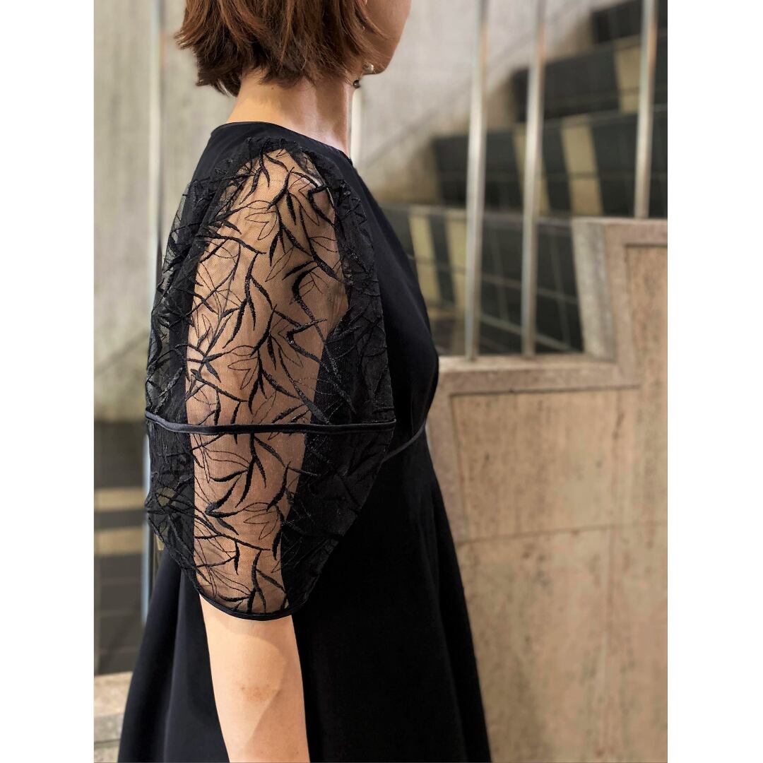 ランタンスリーブドレス 袖がコンシャスになっていて二の腕が