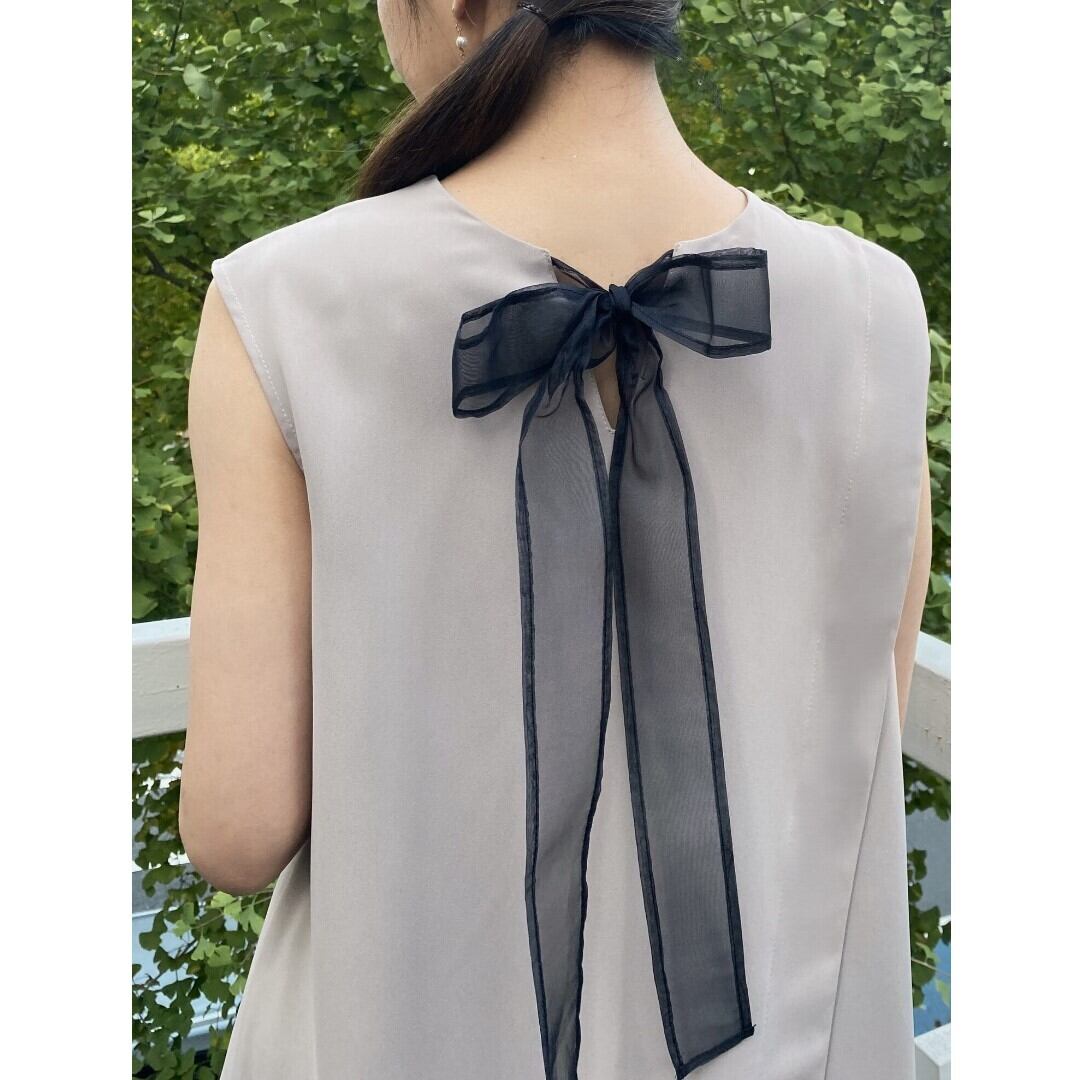 バックリボンにオーガンを使用し、モードな中にフェミニンな印象になります。